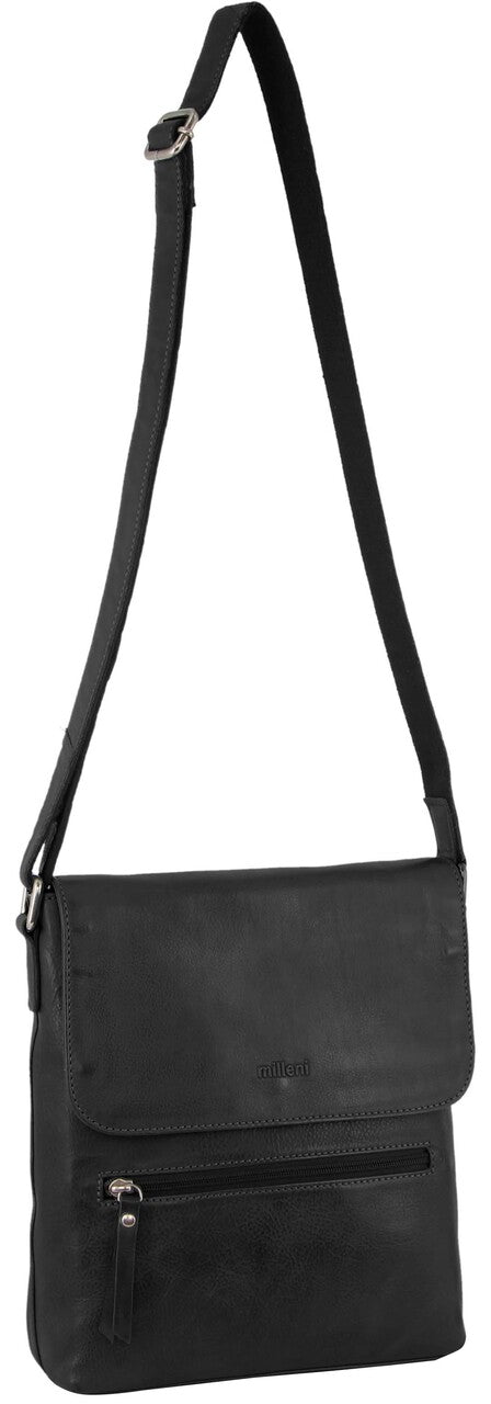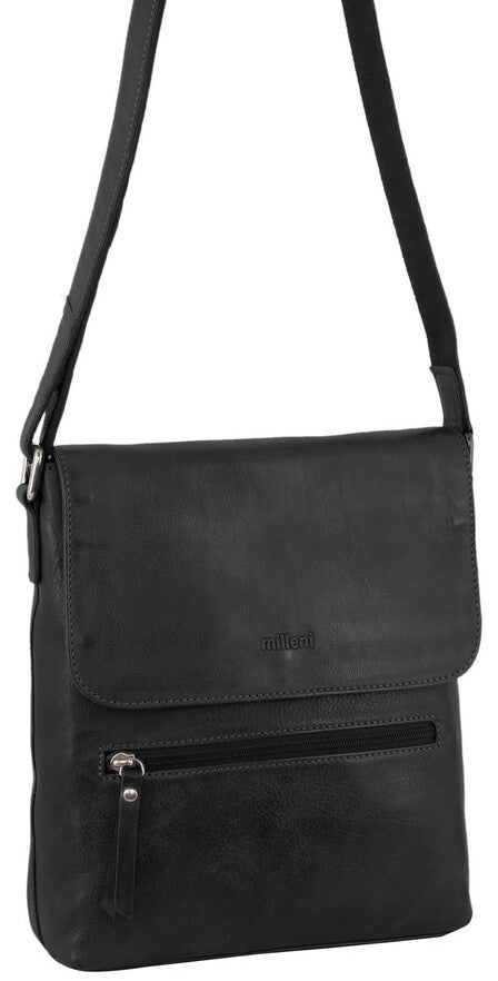 Milleni Ladies Nappa Leather Cross-Body Bag in Black