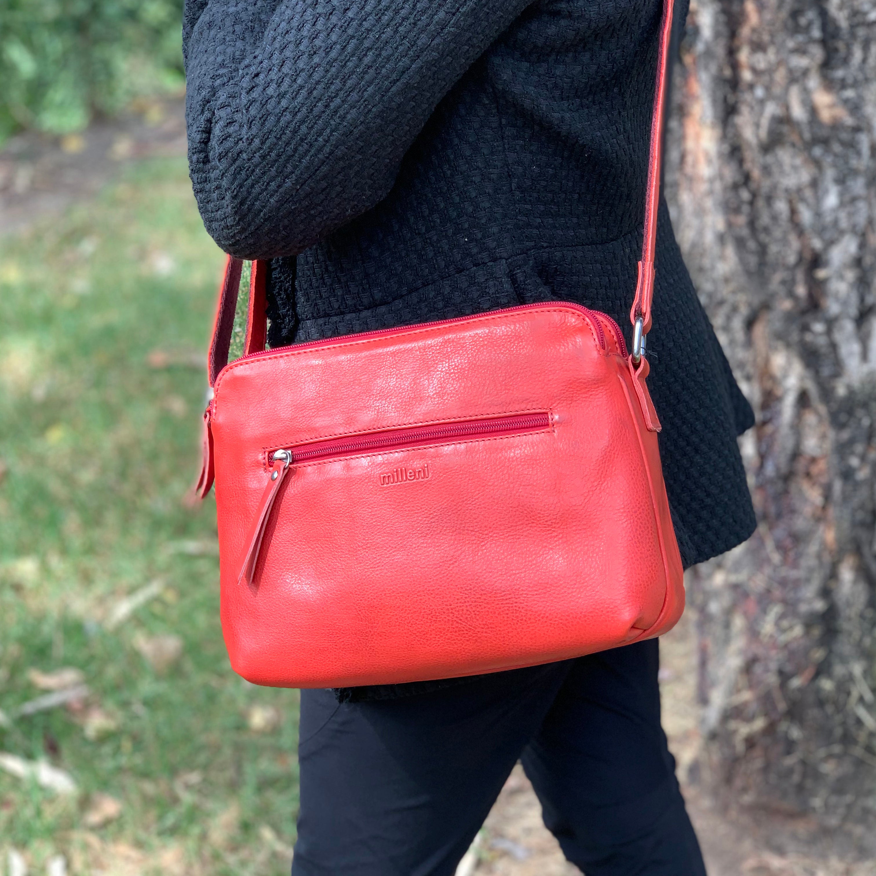 Milleni Ladies Nappa Leather Cross-Body Bag in Red