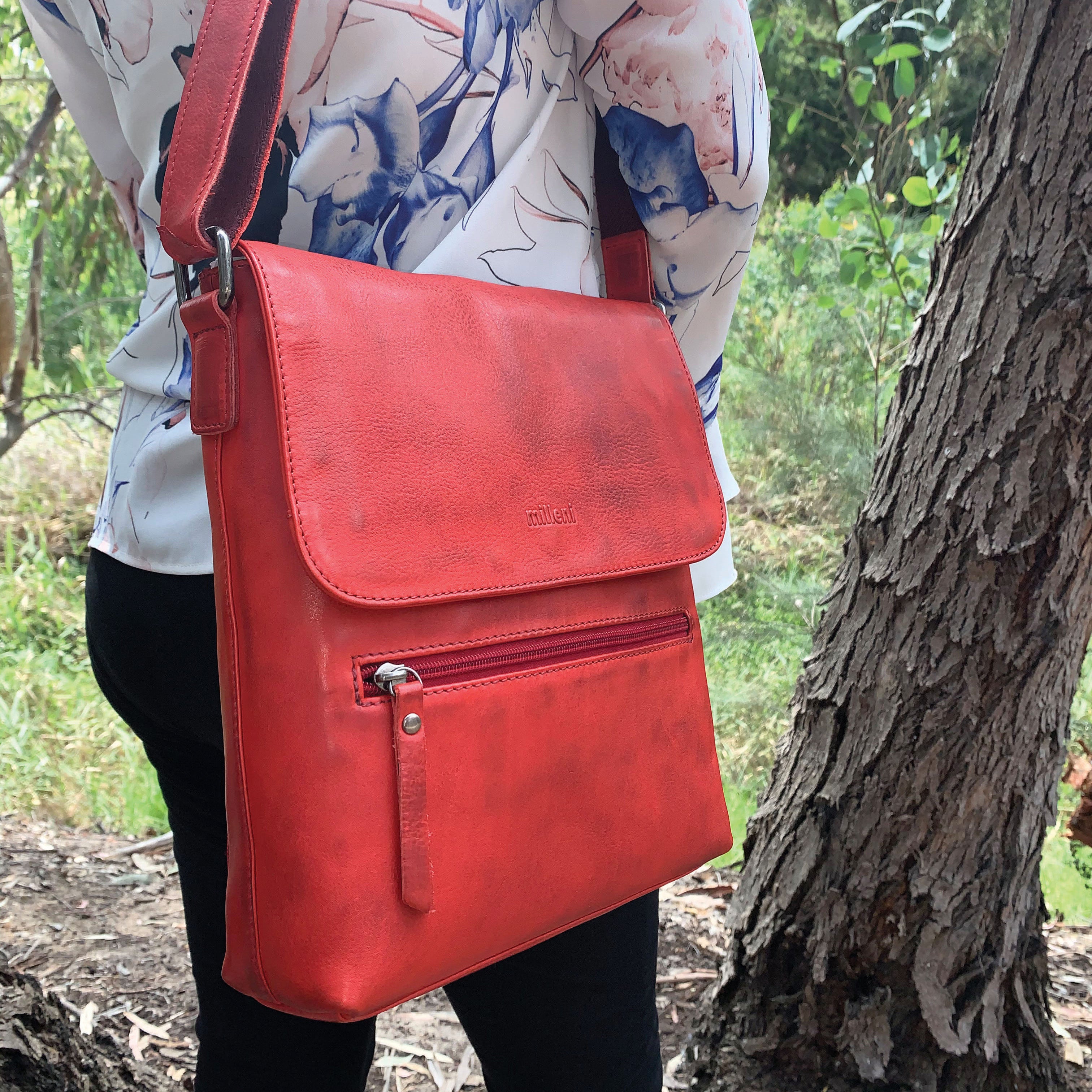 Milleni Ladies Nappa Leather Crossbody Bag in Red