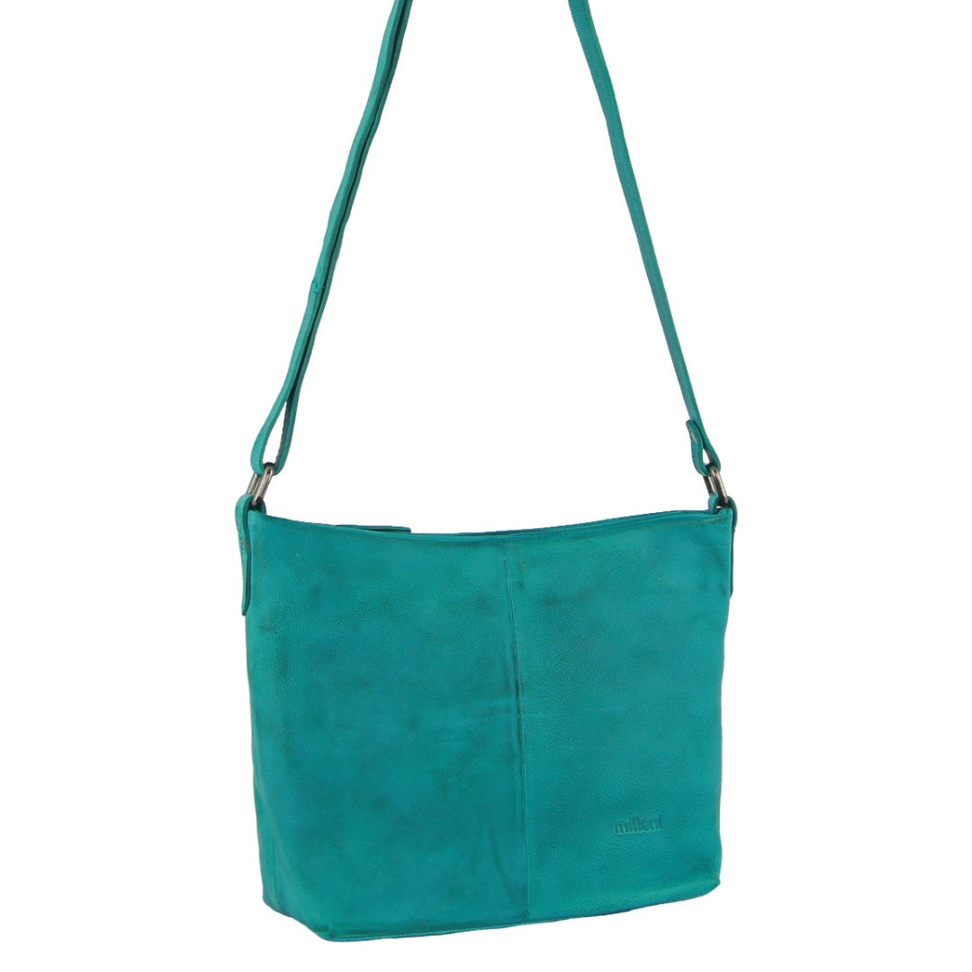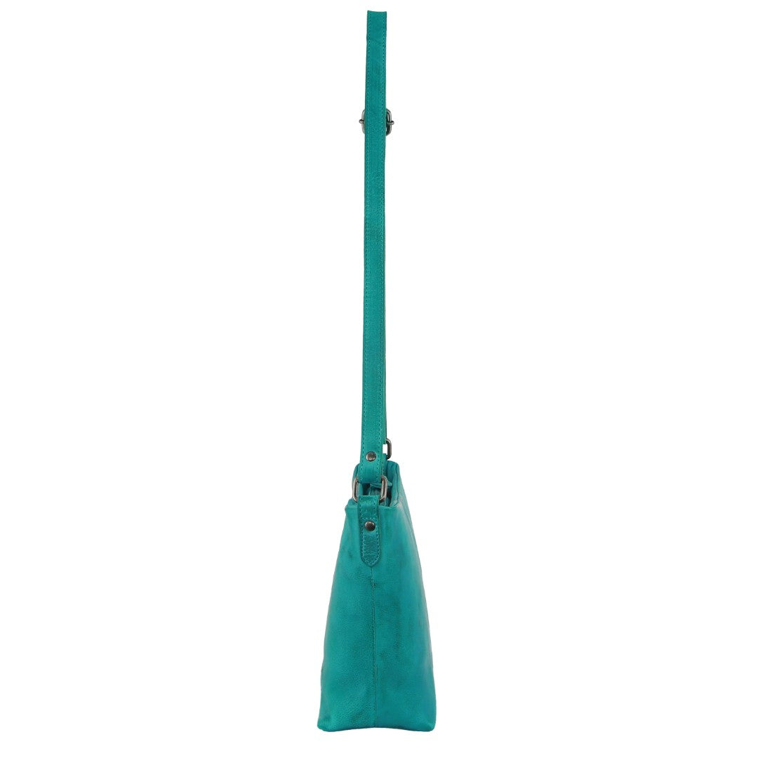 Milleni Ladies Nappa Leather Crossbody Bag in Turquoise