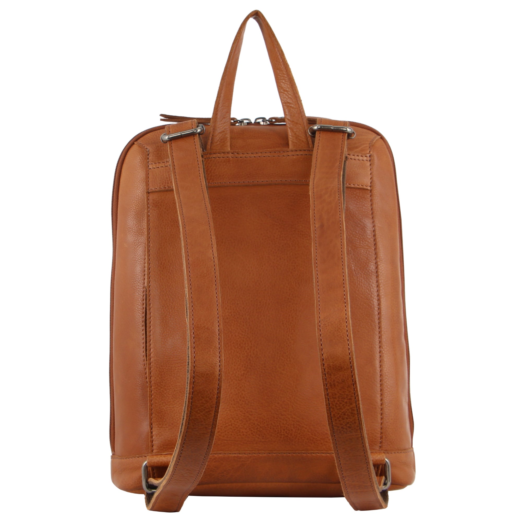 Milleni Ladies Nappa Leather Twin Zip Backpack in Cognac
