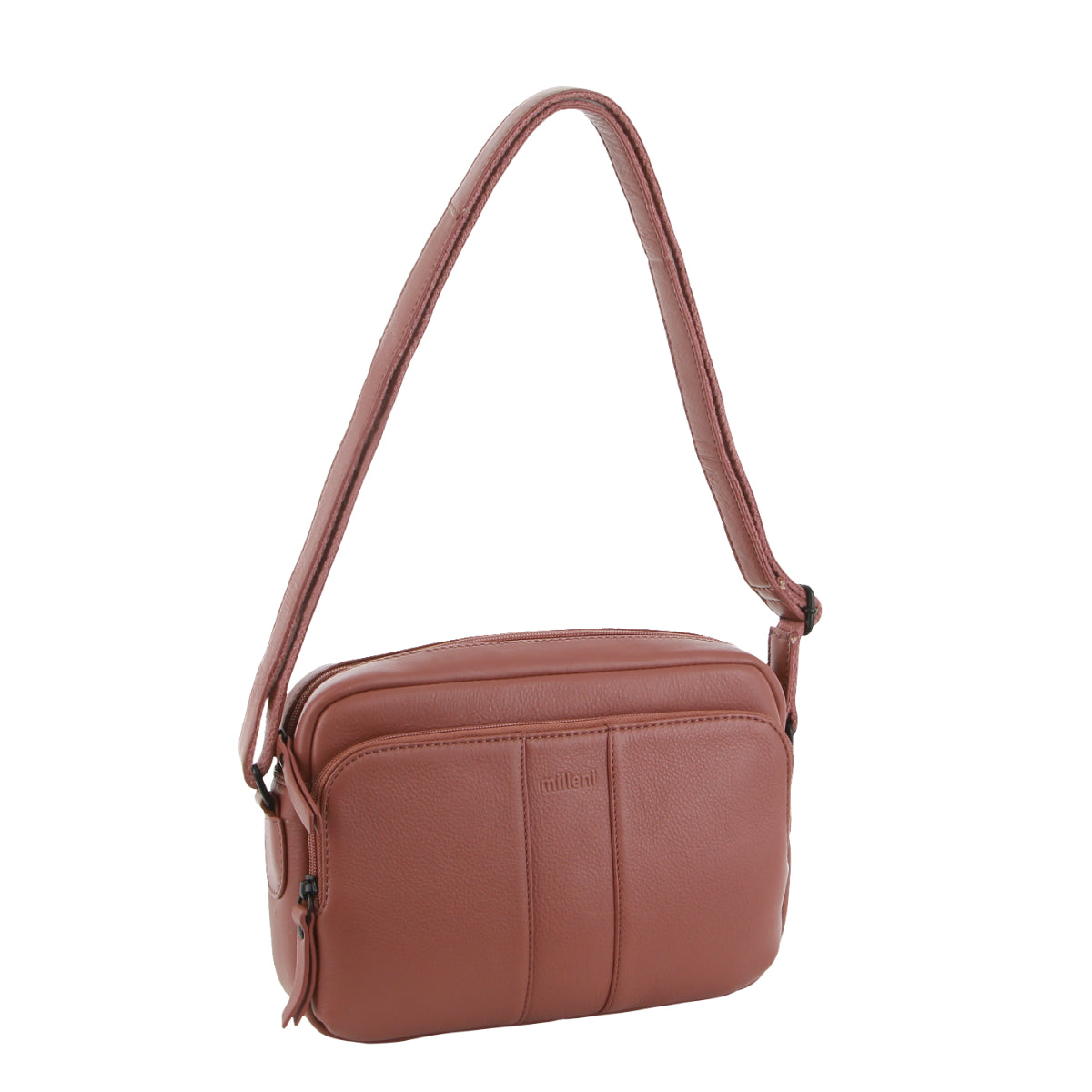 Milleni Leather Ladies Multi-Zip Cross-Body Bag in Rose