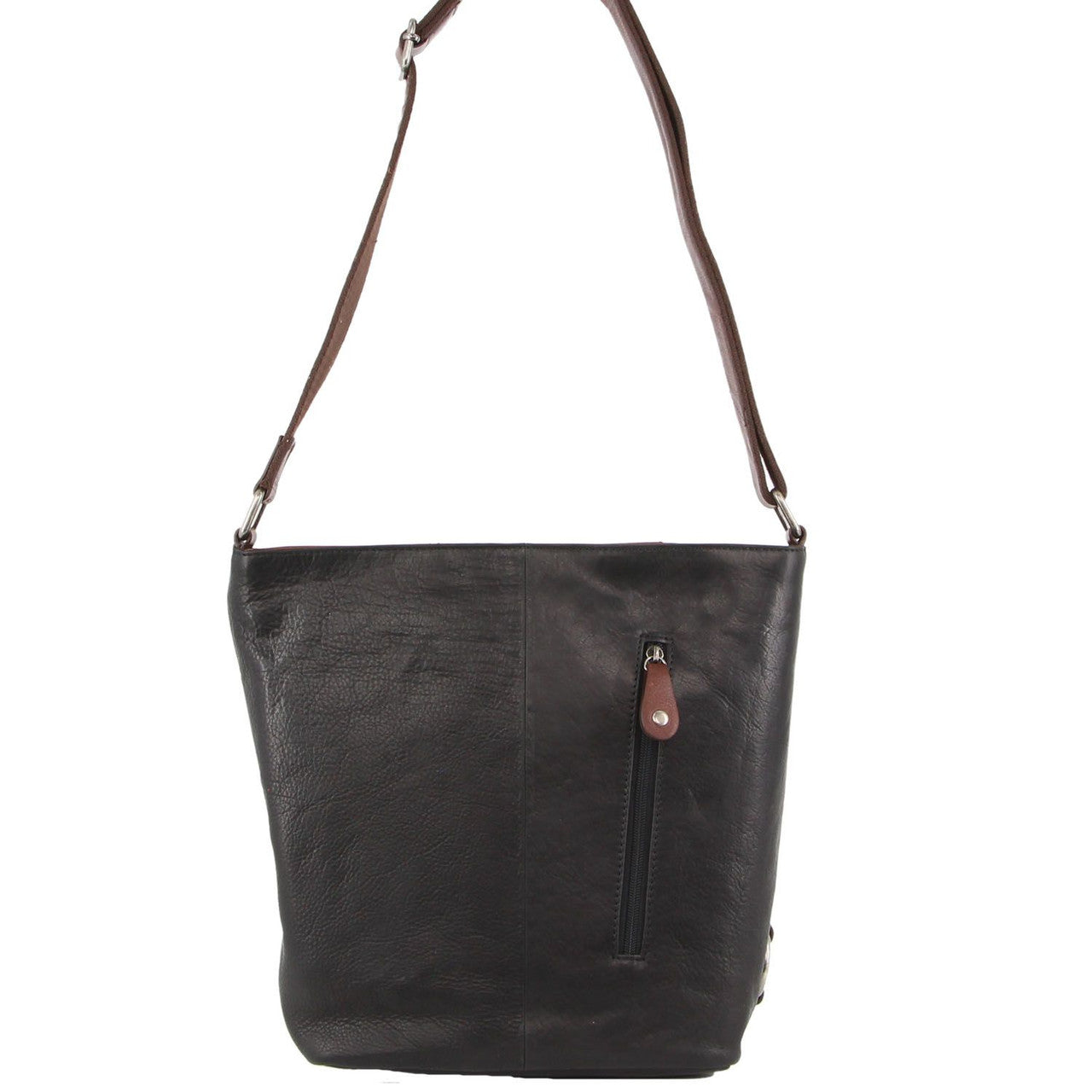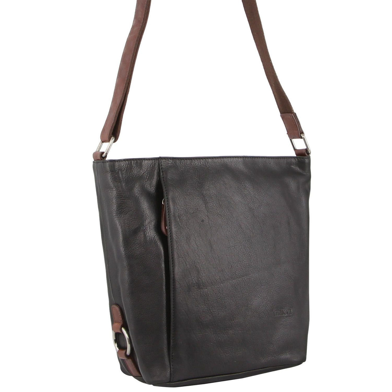 Milleni Ladies Nappa Leather Crossbody Bag in Black-Chestnut