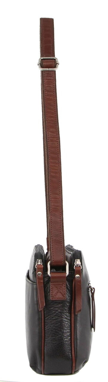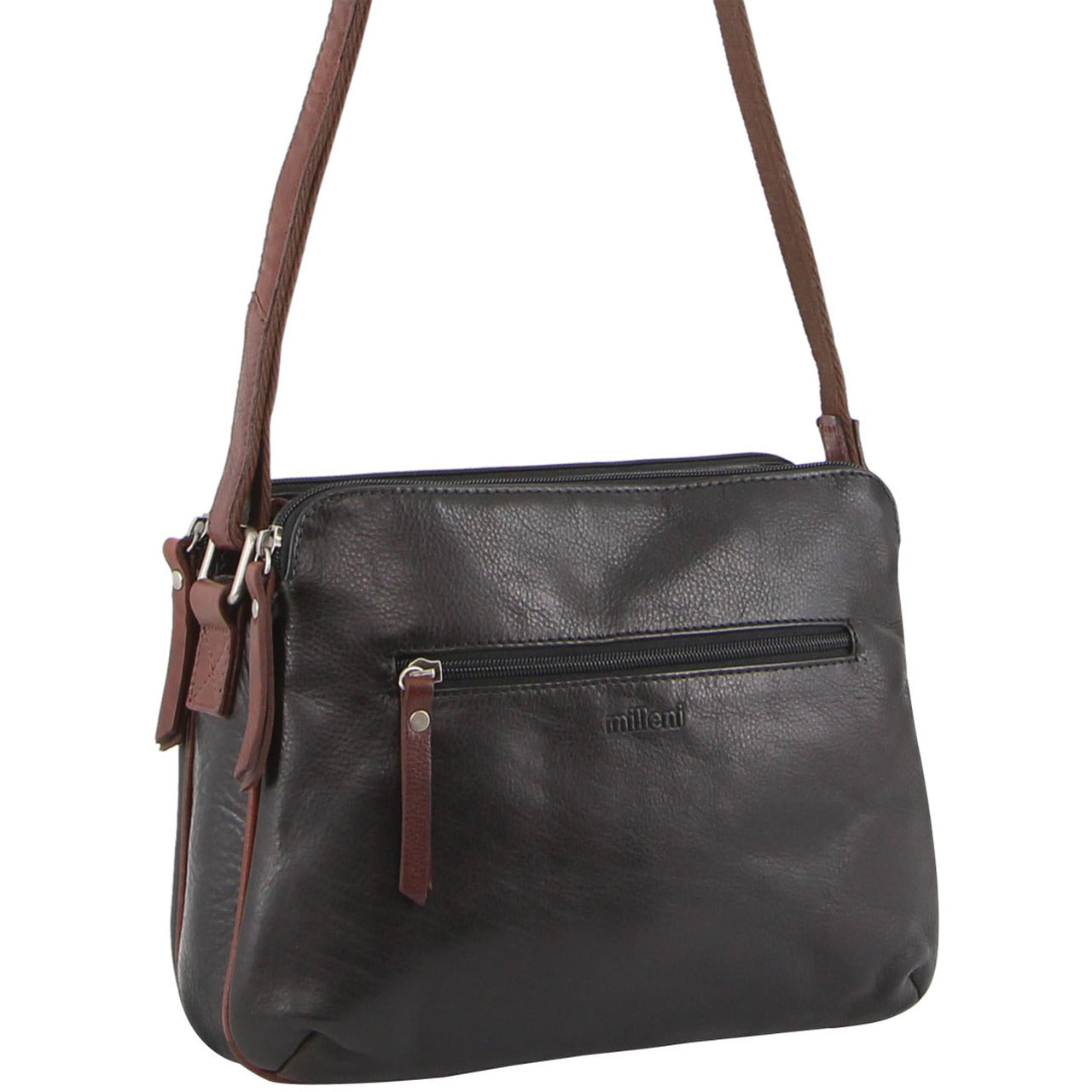 Milleni Ladies Nappa Leather Cross-Body Bag in Black-Cognac